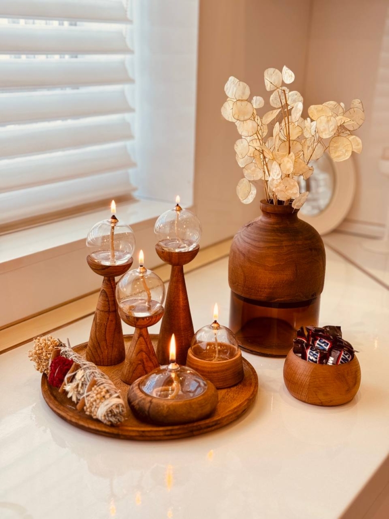 دکوری های مدرن و لوکس جلو مبلی معمولاً دارای یک سینی که هم از جنس شیشه ای هم جنس چوب هستند که وسایلی مانند شمع و شمعدان ، گلدان ، اسنافر ، اسماج ، جا عودی ، قندان و … روی آن قرار میدهید ست جلو مبلی یک پیشنهاد خوب و مناسب برای استفاده در خانه های مدرن و کلاسیک بوده و می توان از آن در تزئین میز ناهارخوری نیز استفاده نمود.